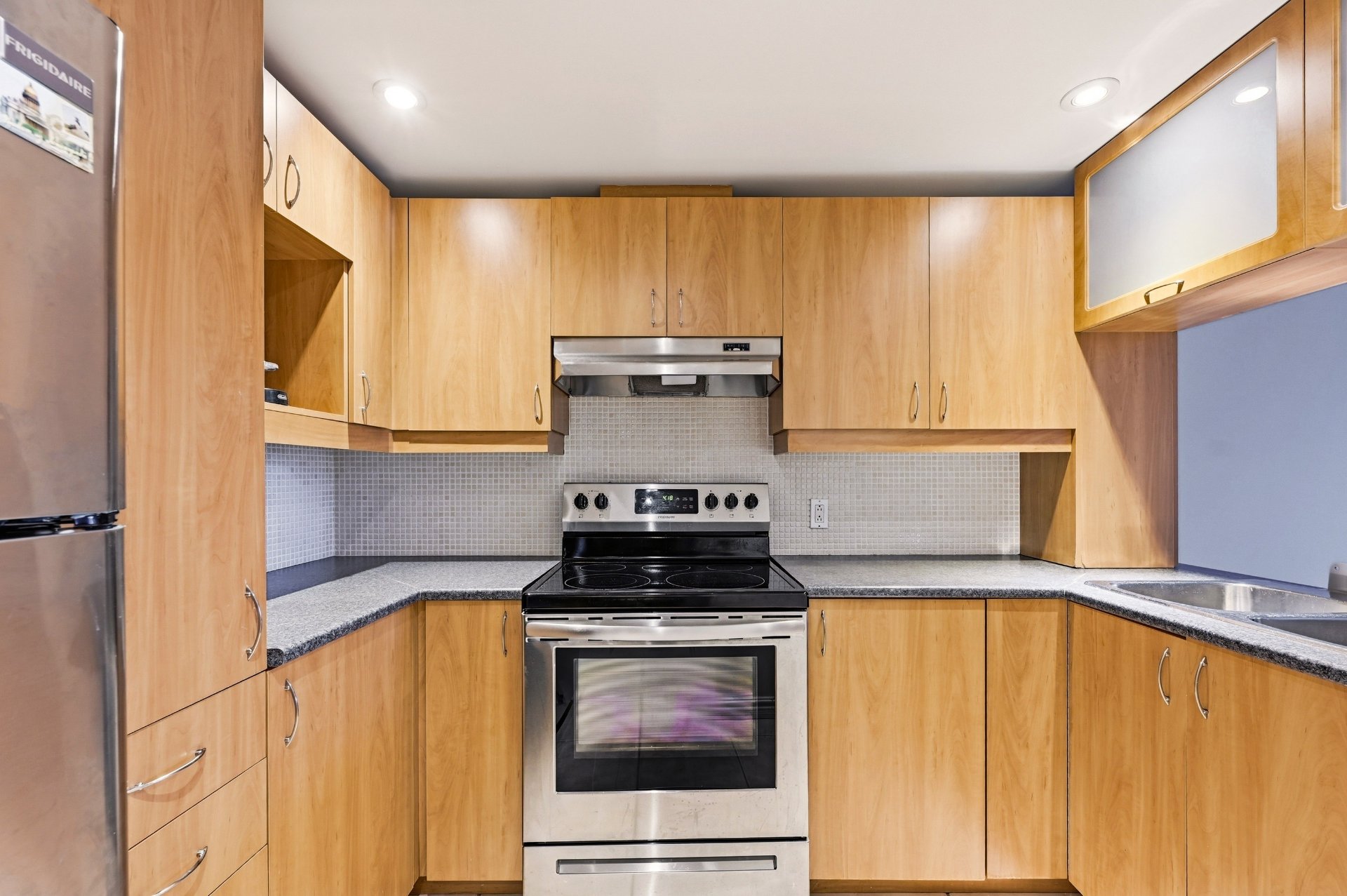 equipped with stylish cabinets, quality appliances and a