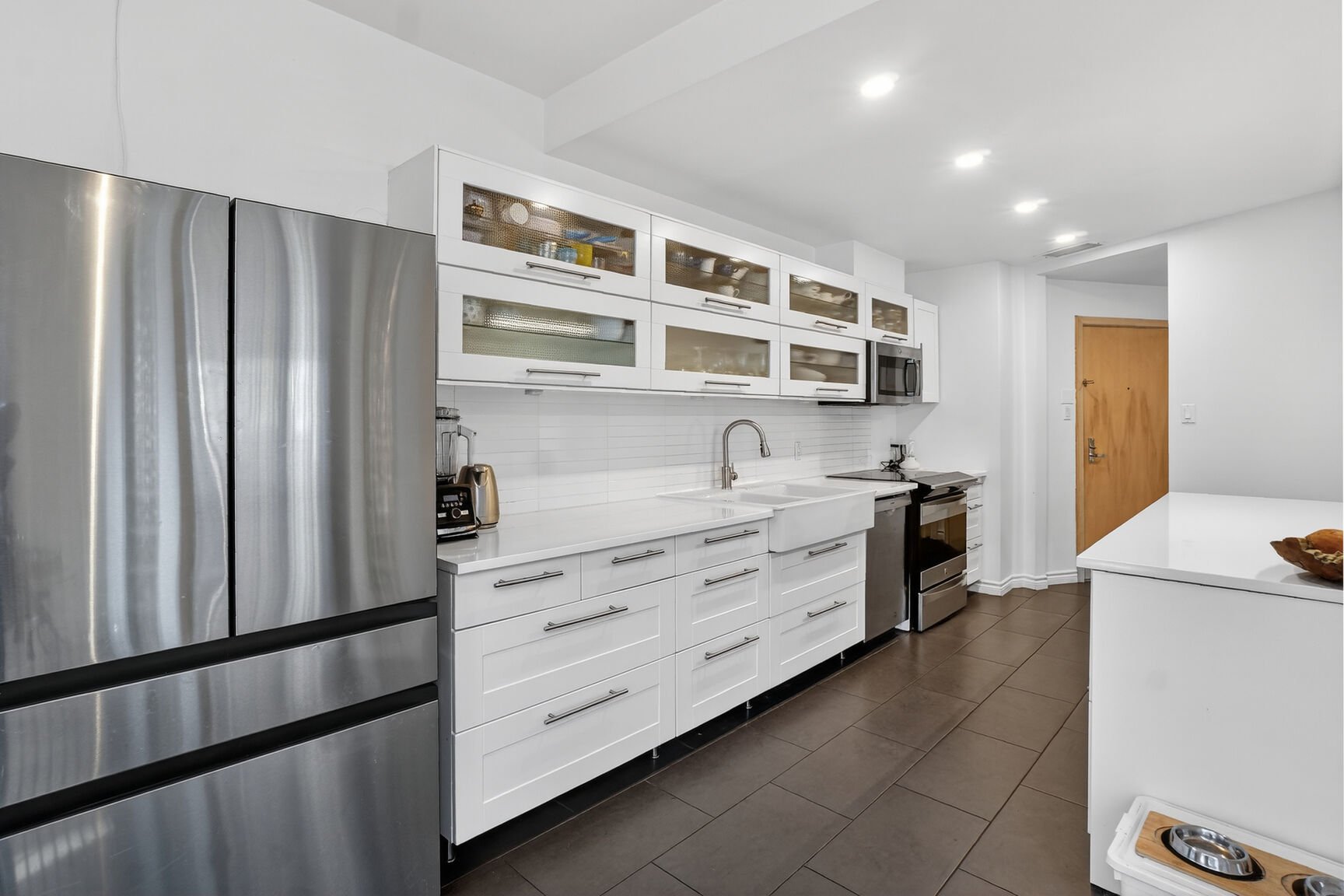 The kitchen features elegant cabinets and a spacious